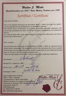 Der günstige Einstieg in die Meisterklasse: Walter Mahr Qualitätsstufe III (Meistergeige in Konzertqualität) 4/4 - Größe, Bubenreuth 2016