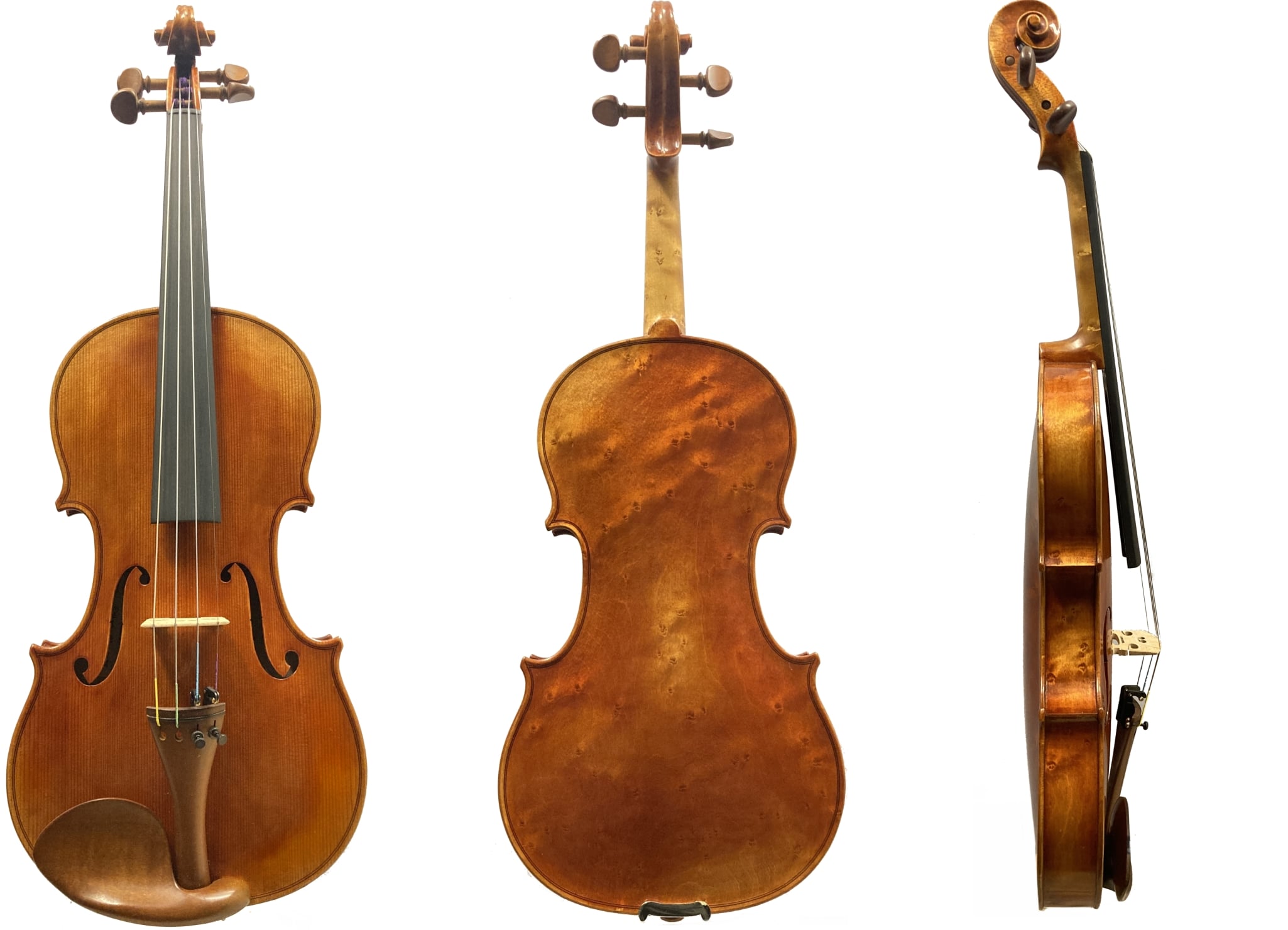 Klangstarkes Instrument. Obertonreicher, singender Ton, sehr ausgeglichen über alles Saiten und Lagen. Die Geige spricht sehr gut an und lässt sich mühelos und leicht spielen.